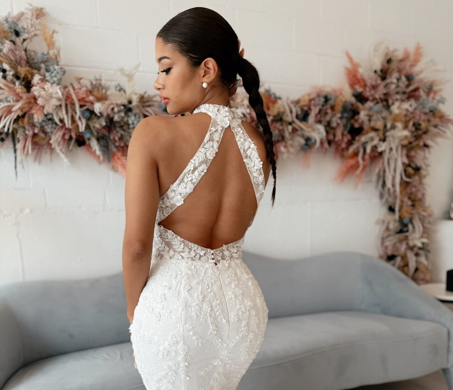 Best with: Sleek or minimalist dresses, and contemporary gowns with sheer or mesh detailing